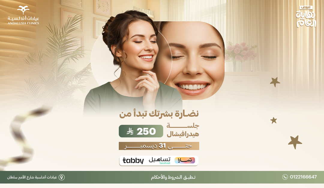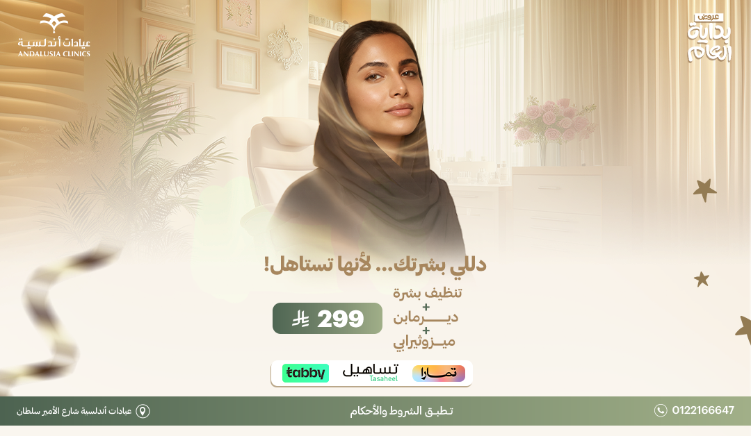 .احجزي الحين بعيادات أندلسية، فرع الأمير سلطان، وخلي بشرتك تستعيد نضارتها بخطوة بسيطة.