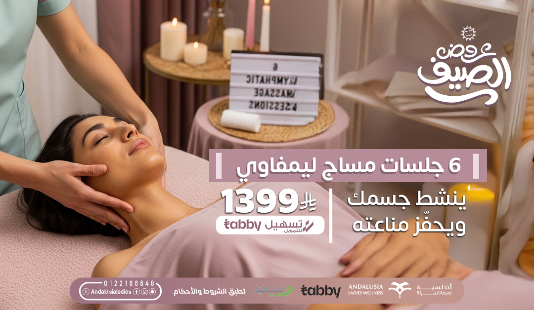 راح تسوّي 6 جلسات تنظّف جسمك من السموم!المساج الليمفاوي يساعدك على تحسين الدورة الدموية، تقليل احتباس السوائل، ويعزز مناعة جسمك بشكل طبيعي.احجزي باقتك الحين، وابدئي رحلتك الصحية، العرض لفترة محدودة